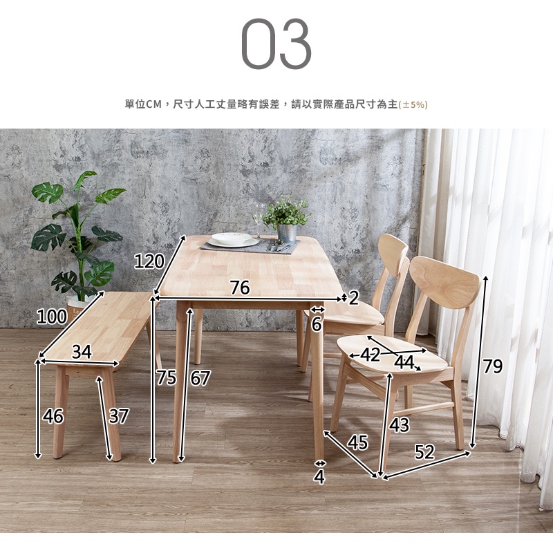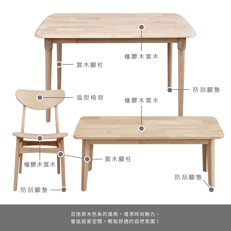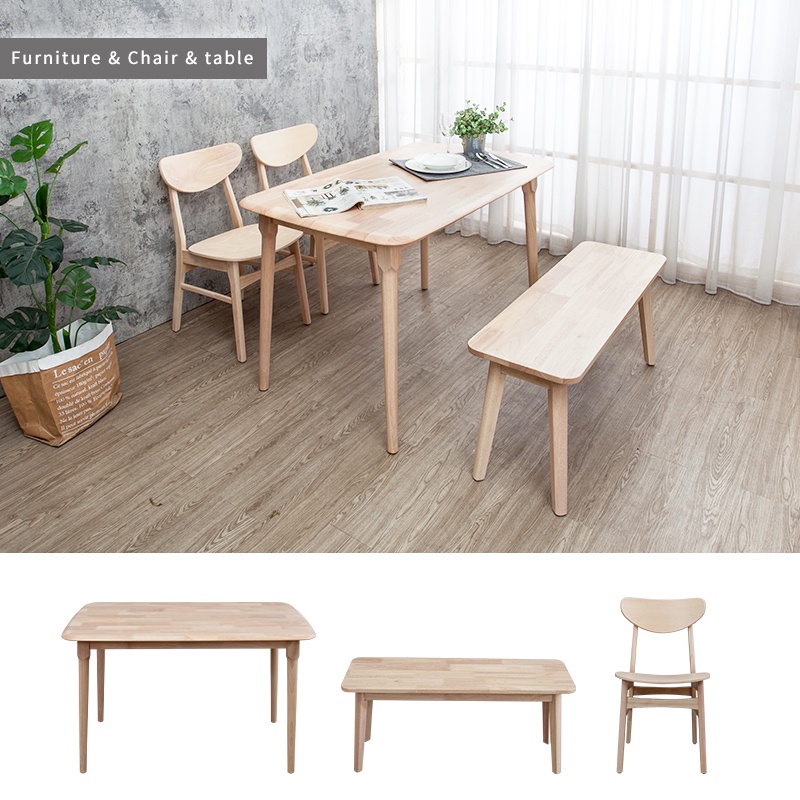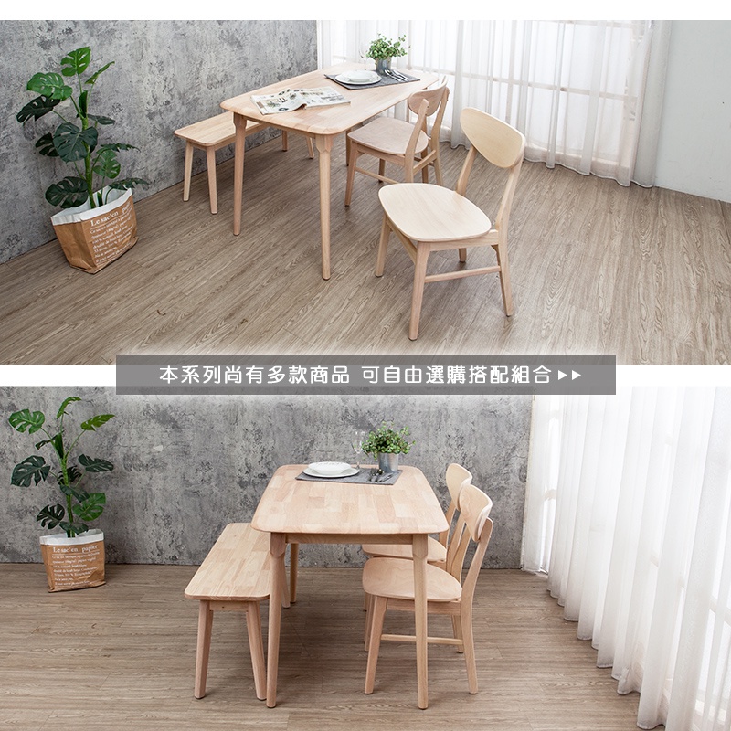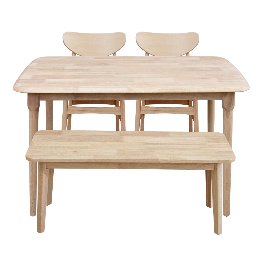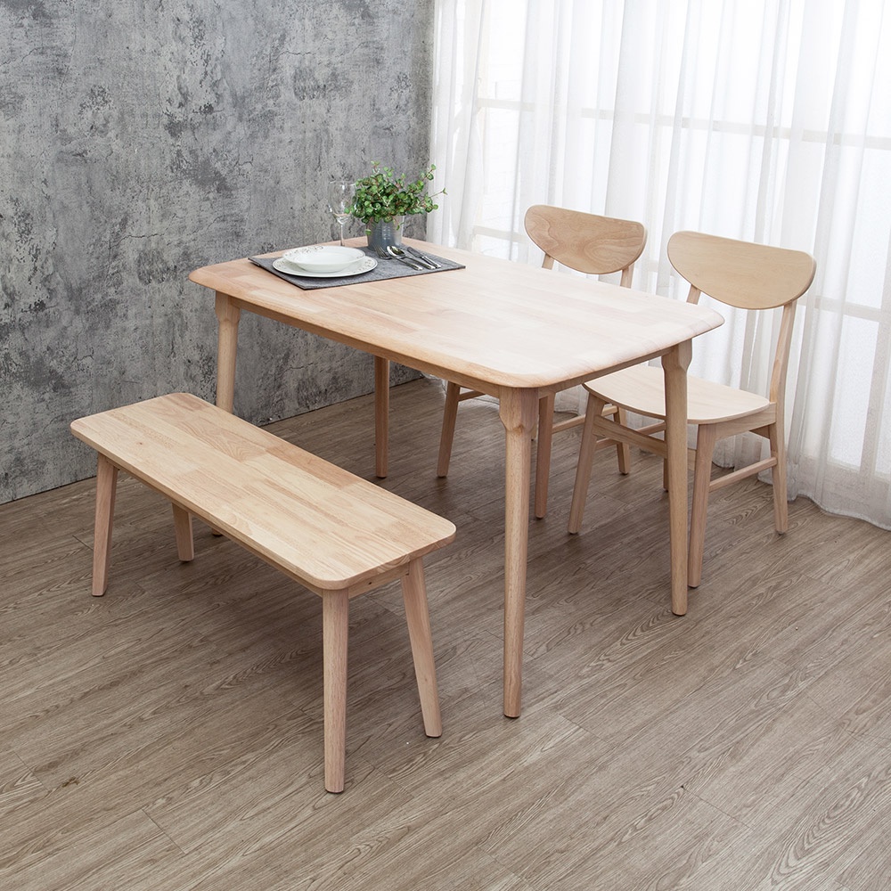 Boden-馬恩4尺實木餐桌+塔西實木餐椅+坦卡司3.3尺實木長凳組合-鄉村木紋色(一桌二椅一長凳)