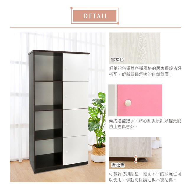 Boden-2.8尺四門左開放式防水塑鋼收納櫃/置物櫃(五色可選)