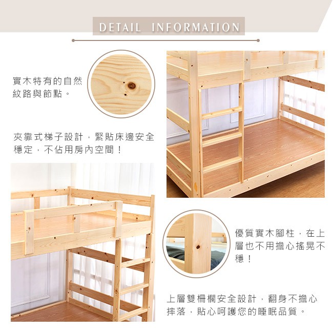 Boden-尼凱3.5尺實木雙層床架(原木色)