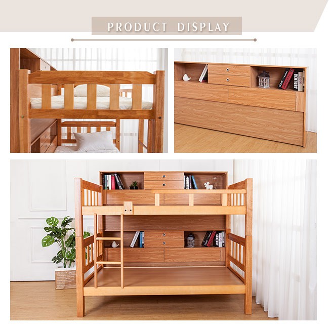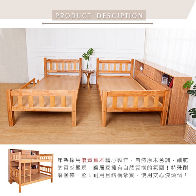 Boden-卡特爾3.5尺實木雙層床架(含收納邊櫃)