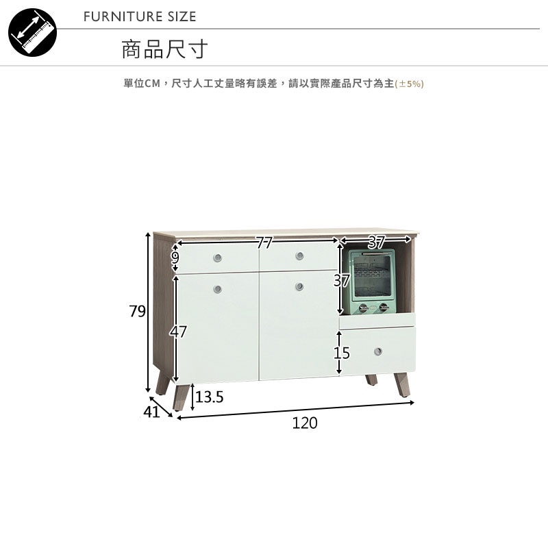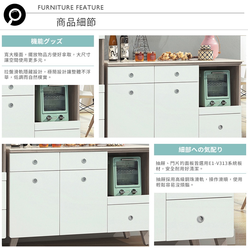 Boden-潔妮4尺三抽二門石面收納餐櫃/碗盤櫃/拉盤電器櫃/置物矮櫃