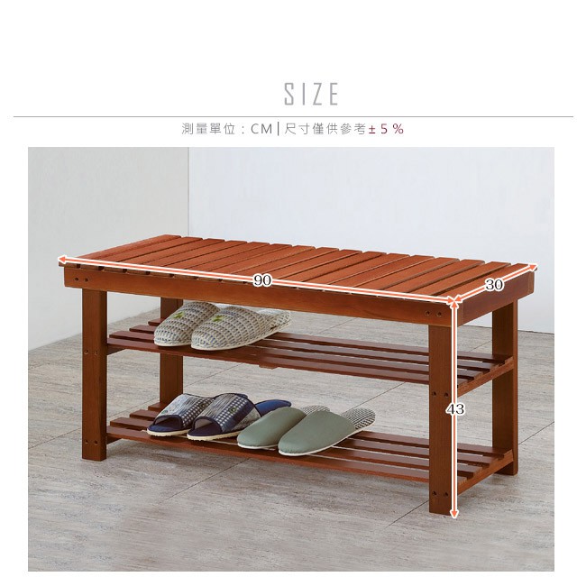 Boden-德溫2.6尺實木二層鞋架/穿鞋椅 DIY組裝