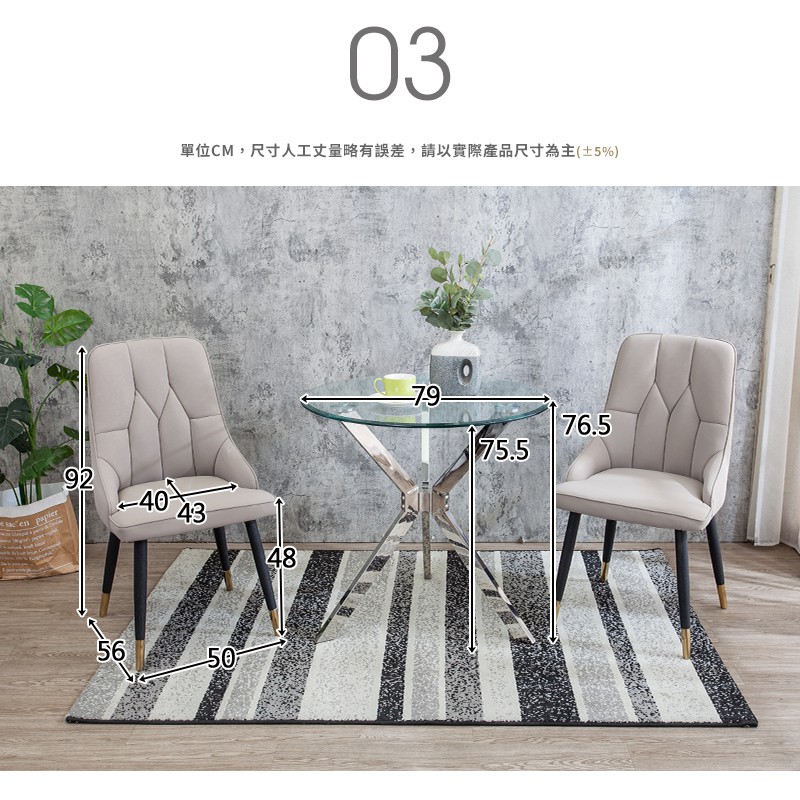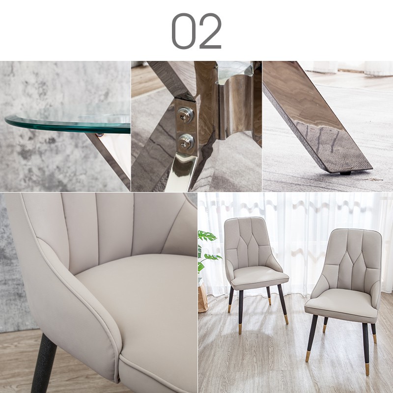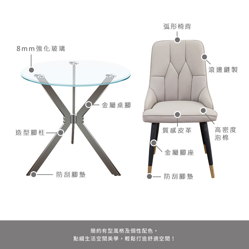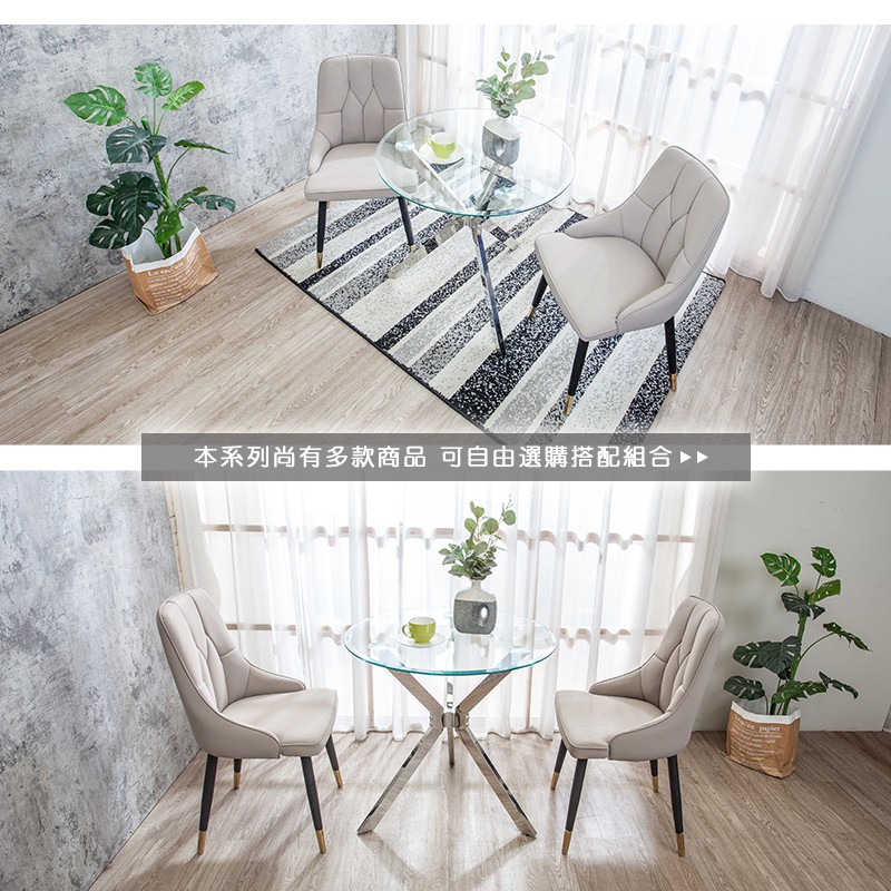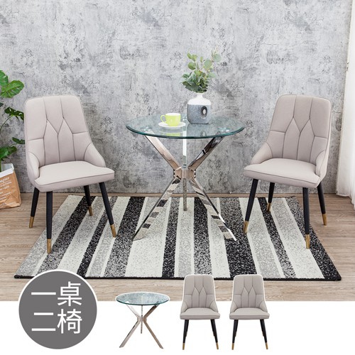 Boden-海肯2.6尺玻璃圓型餐桌/洽談桌+奧瑞工業風米色耐刮皮革餐椅(一桌二椅)