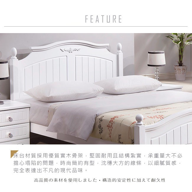 Boden-艾莎法式6尺雙人加大床組/白色實木床架(不含床墊)