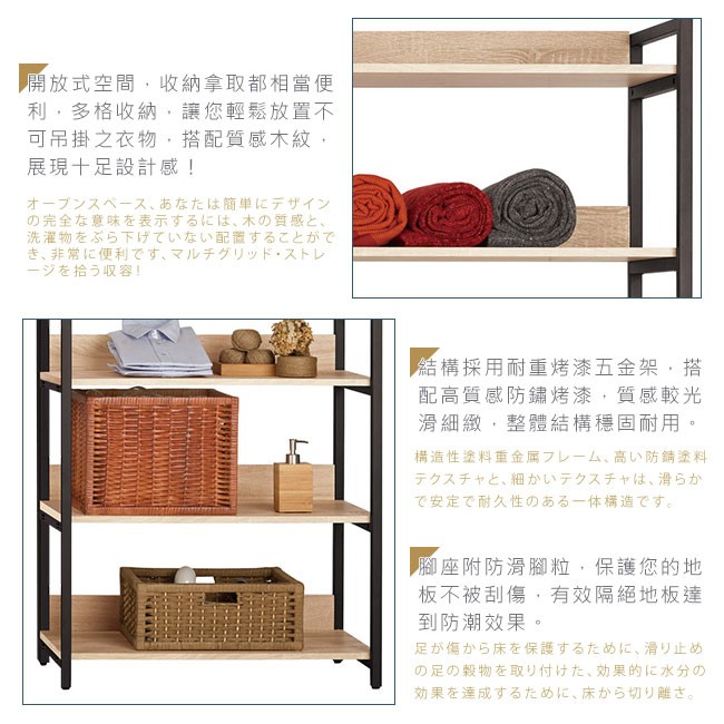 Boden-裴拉2.7尺開放式多層收納衣櫃/工業風衣櫃
