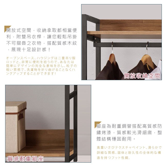 Boden-諾德2.7尺開放式雙吊衣櫃/工業風衣櫃