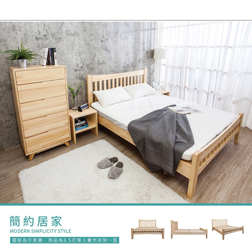 Boden-森林家具 里約3.5尺單人實木床架(不含床墊)