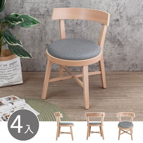 Boden-優奇灰色布紋皮革實木餐椅/單椅(四入組合)