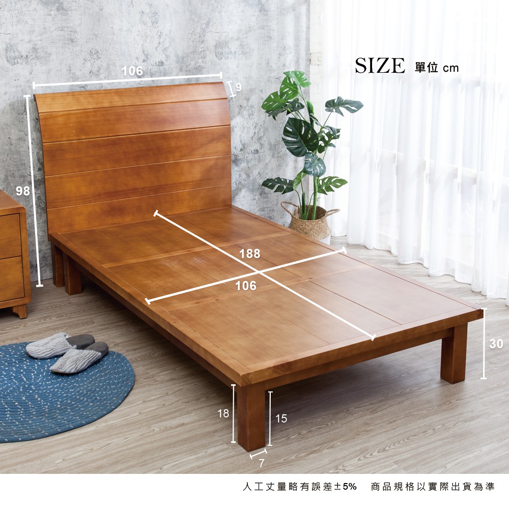 Boden-森林家具 柯特3.5尺單人全實木床架(床頭片+床底)(不含床墊)