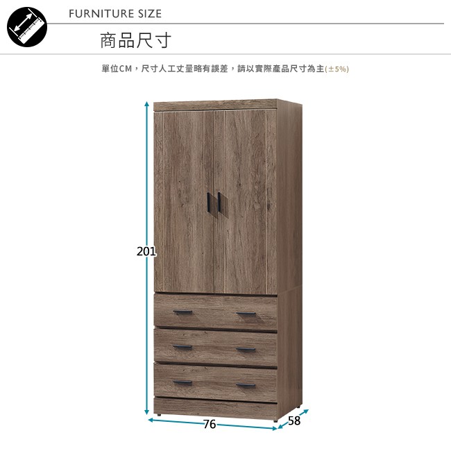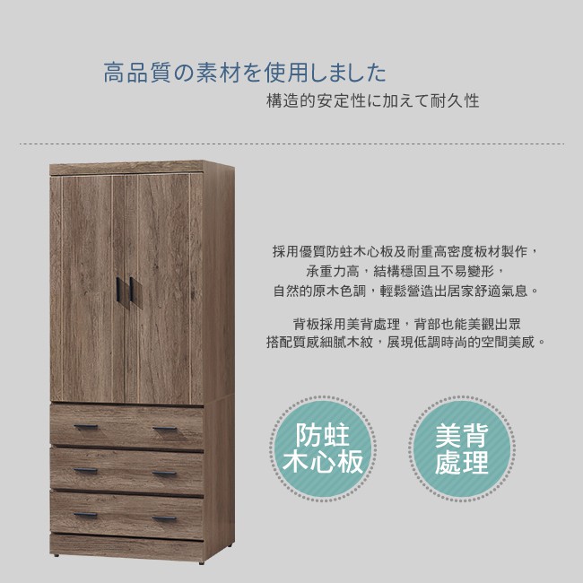 Boden-貝恩2.5尺二門三抽加高衣櫃