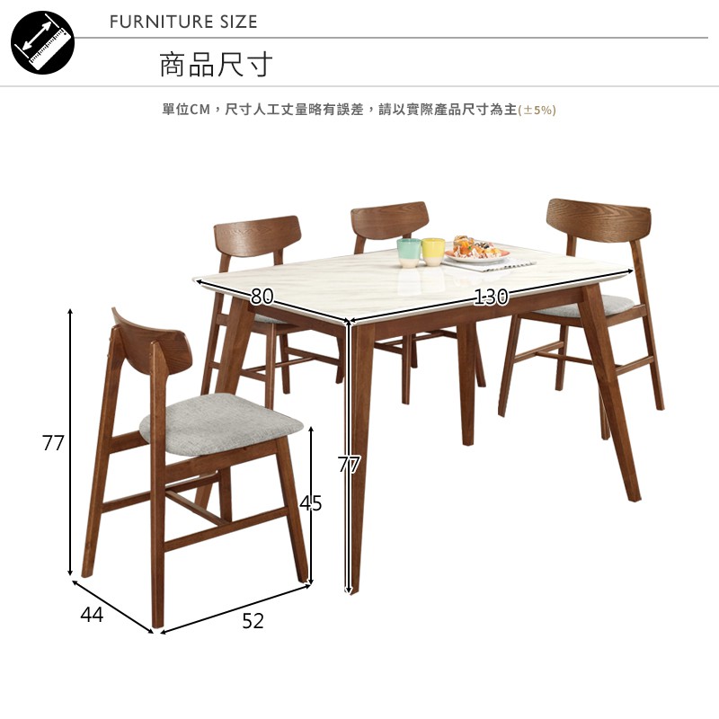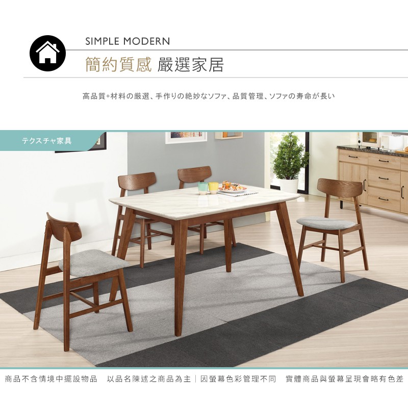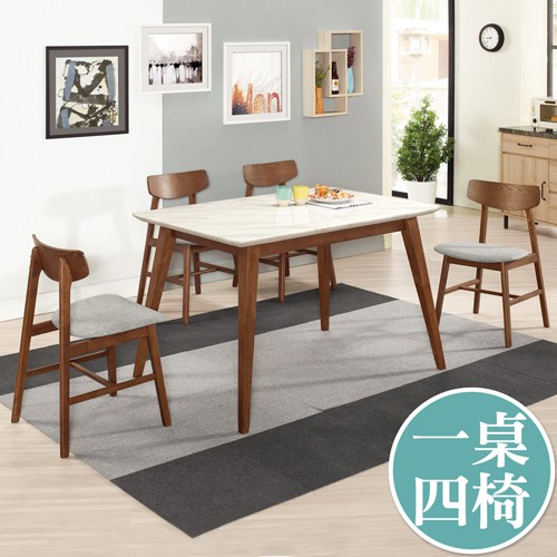 Boden-溫克4.3尺胡桃色石面餐桌椅組合(一桌四椅)(灰色布餐椅)