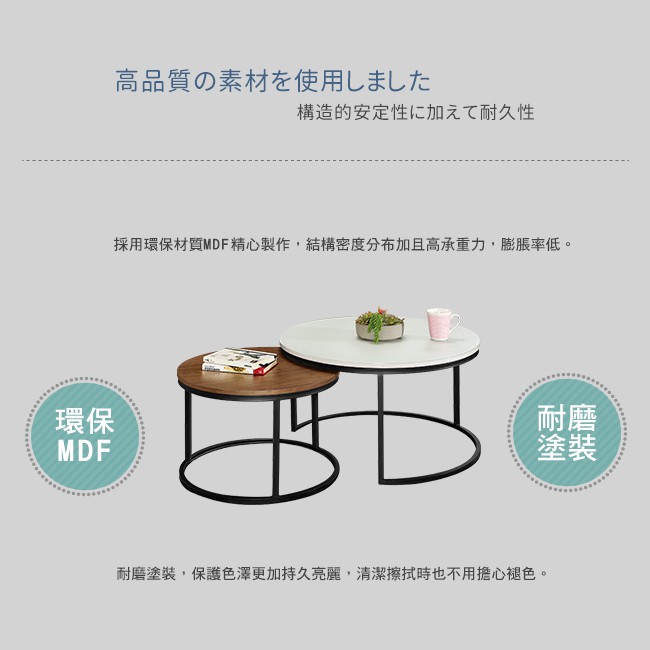 Boden-嘉利4.7尺工業風圓型玻璃茶几組合(2.7尺茶几+2尺茶几)