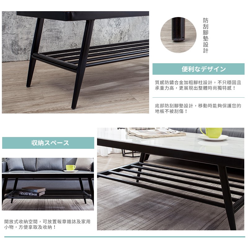 Boden-尼凱森3.7尺現代工業風仿石面玻璃大茶几