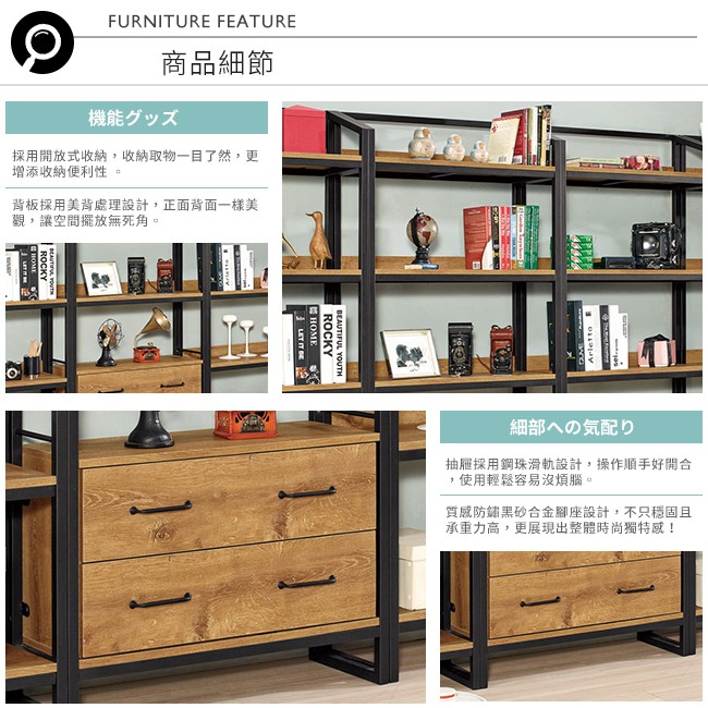Boden-克蒙2.7尺工業風開放式二抽書架/五層架/展示置物架