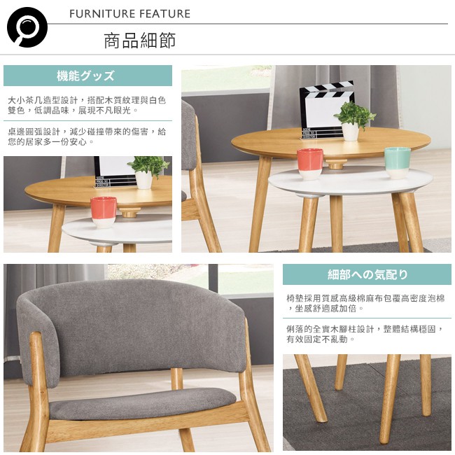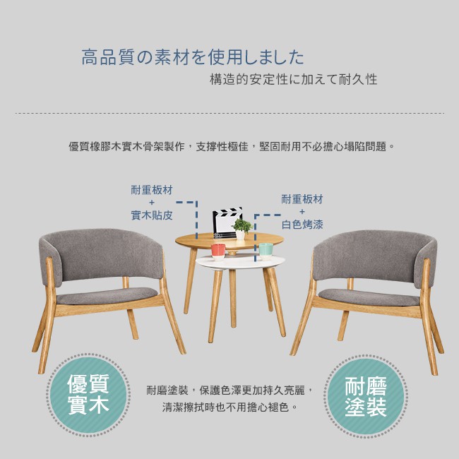 Boden-艾尼斯實木扶手餐椅+3.2尺圓型小茶几組合/洽談桌椅組合(一桌二椅)