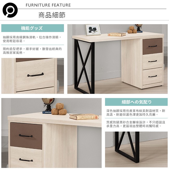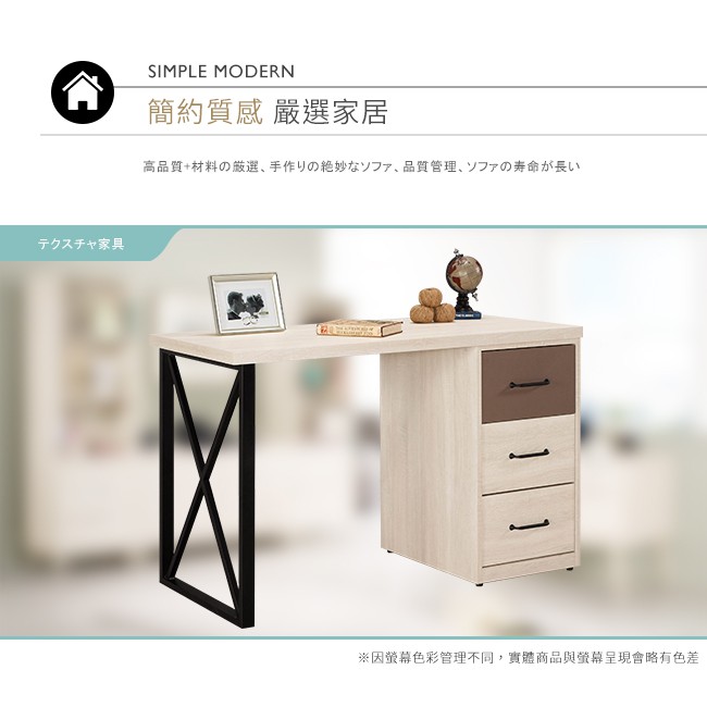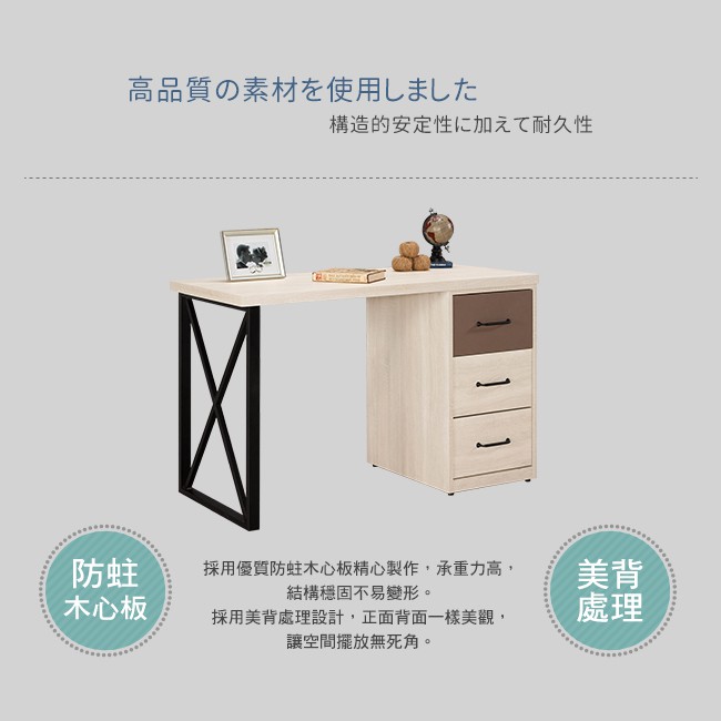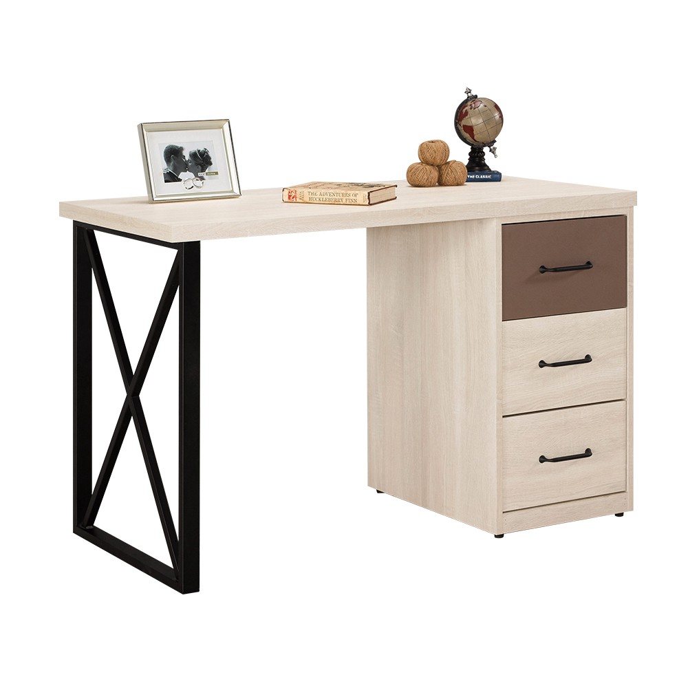 Boden-比恩4尺三抽書桌/工作桌(可調整方向)