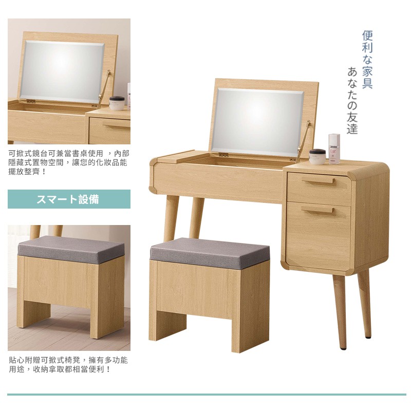 Boden-達芙3尺北歐風掀蓋式化妝桌/鏡台/梳妝台(贈化妝椅)