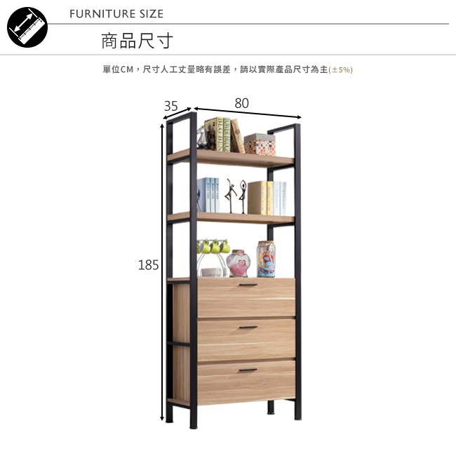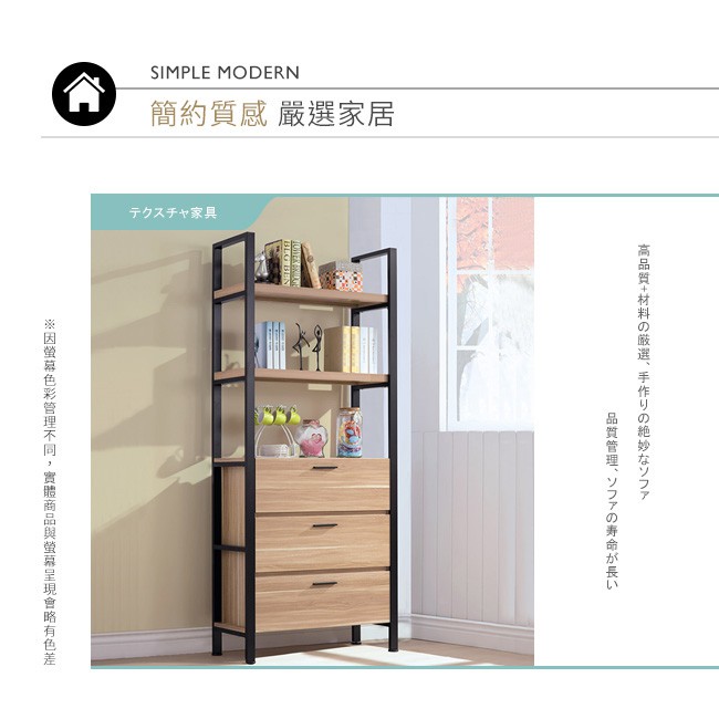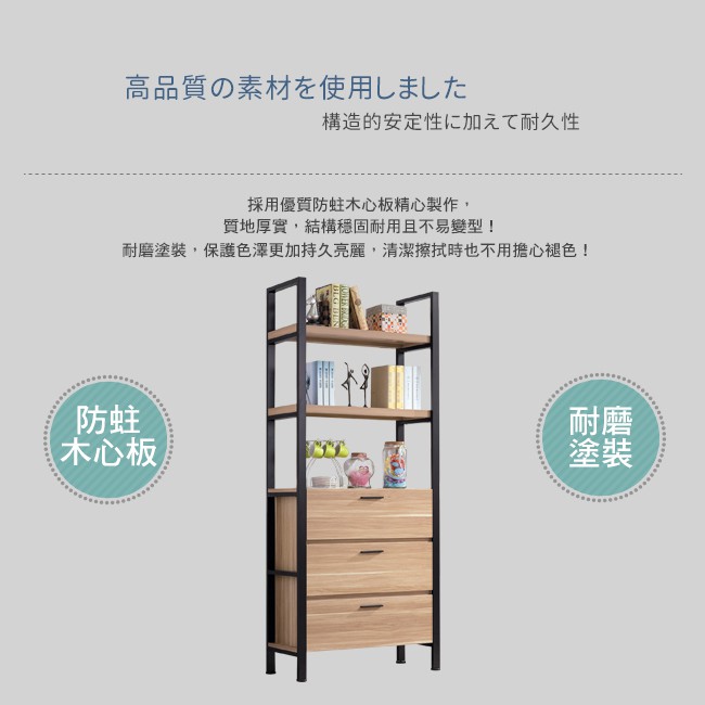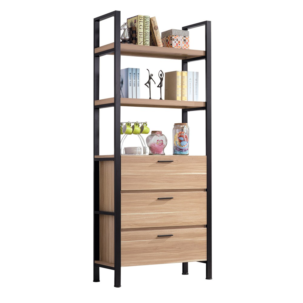Boden-東尼歐2.7尺工業風三抽開放式書架/展示置物架