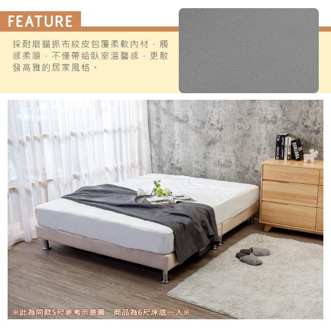 Boden-洛菲6尺貓抓皮加大雙人床底(不含床頭片)(三色可選)