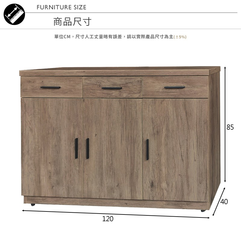 Boden-海斯4尺收納餐櫃/碗盤櫃/電器櫃(灰橡色)