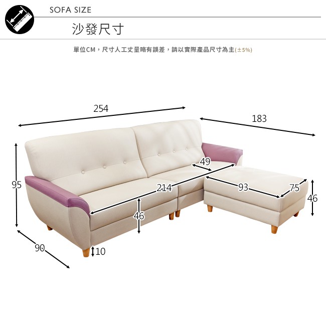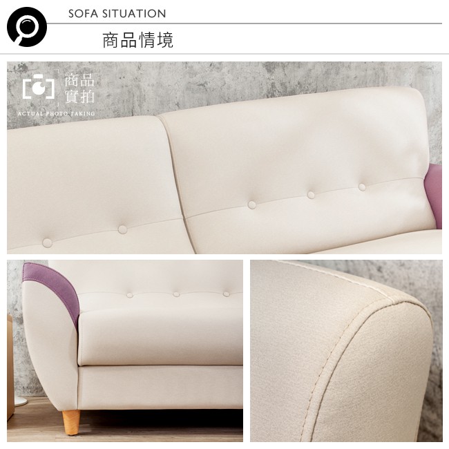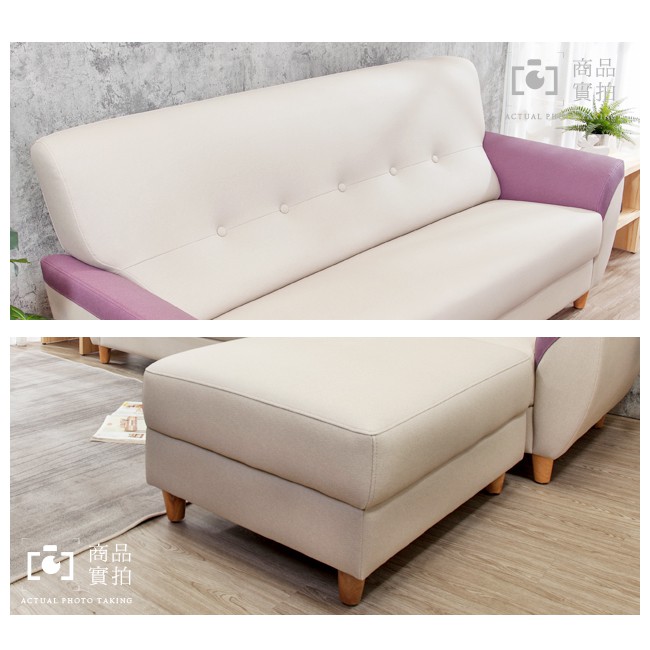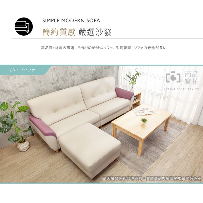 Boden-泰利 耐磨貓抓皮機能L型沙發(四人座+腳椅)(米色+紫紅扶手)