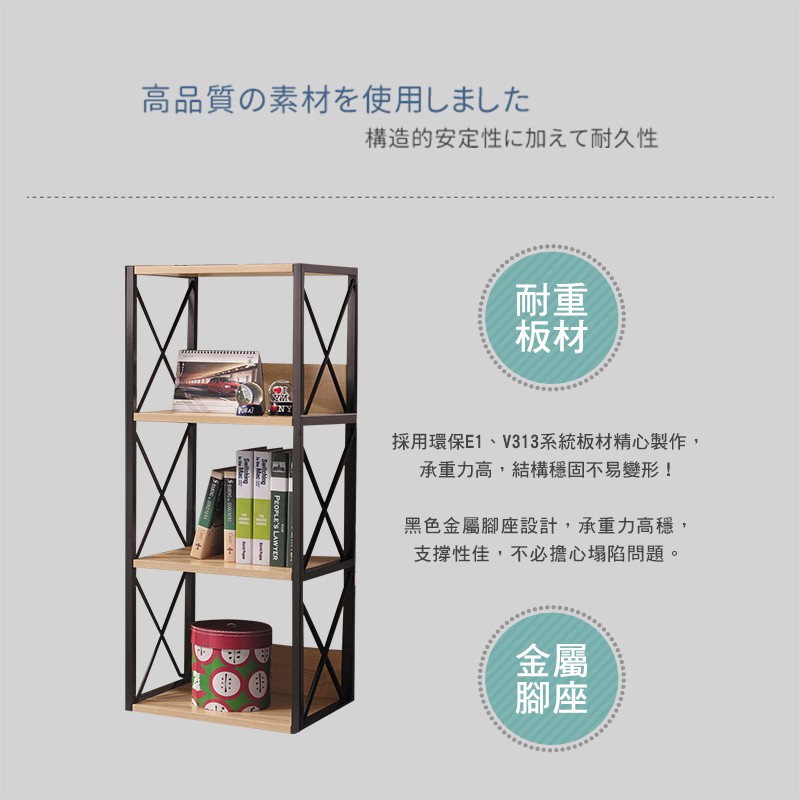Boden-艾斯爾1.5尺工業風開放式中書架/三層收納置物架/展示架