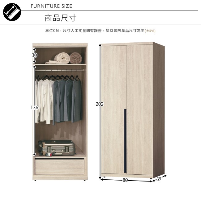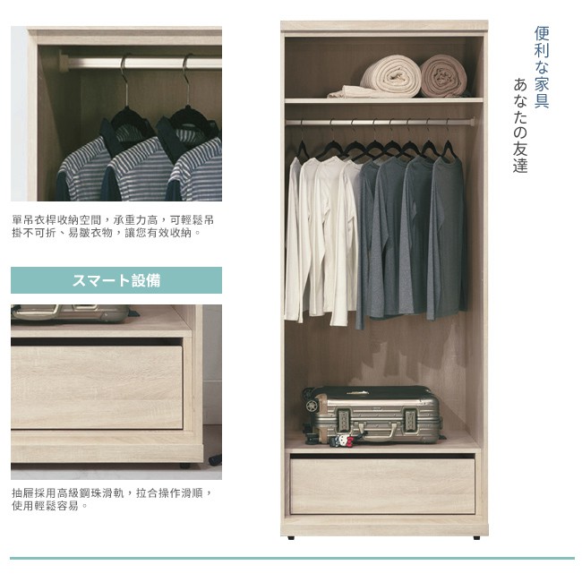 Boden-維森2.7尺二門衣櫃(單吊桿)