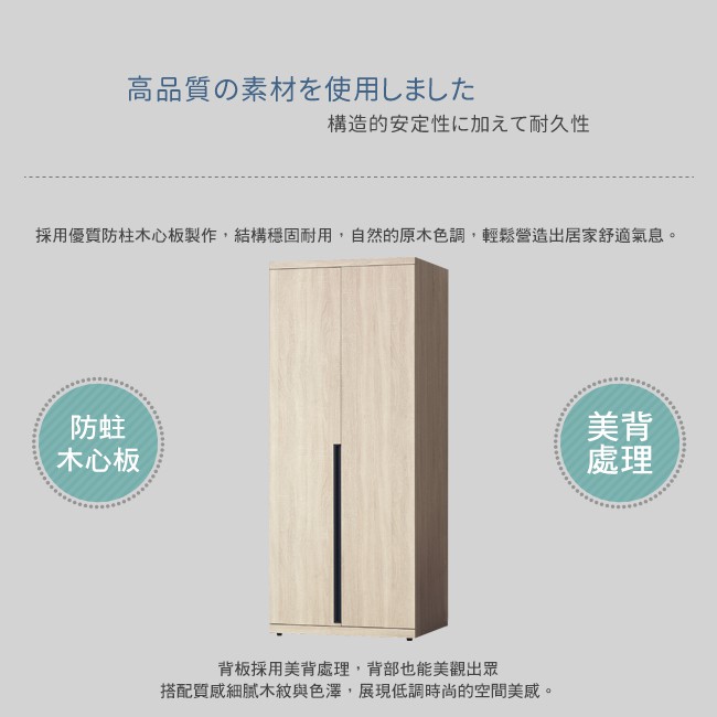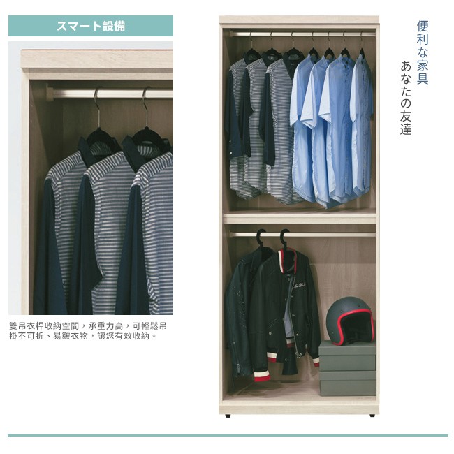 Boden-維森2.7尺二門衣櫃(二吊桿)