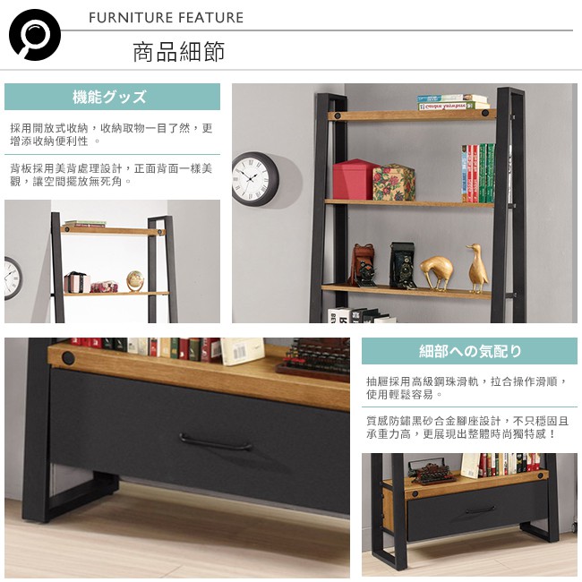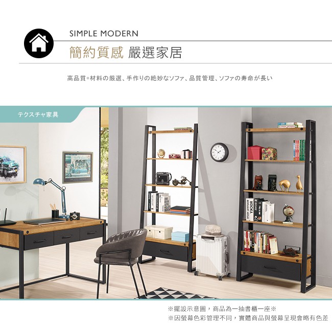 Boden-克蒙2.7尺工業風開放式一抽書架/五層架/展示置物架