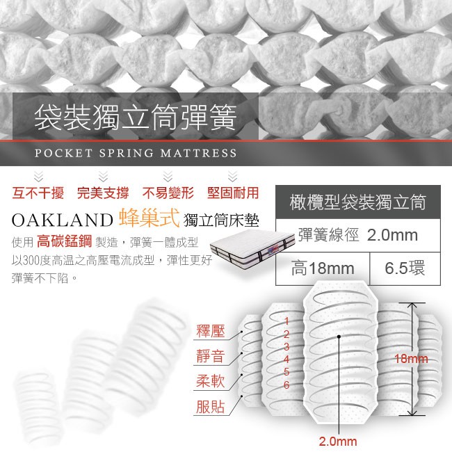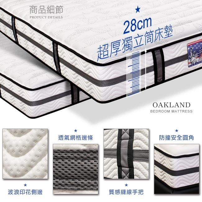 美國BIA名床-Oakland 獨立筒單人/雙人床墊-3.5尺/5尺/6尺/6x7尺