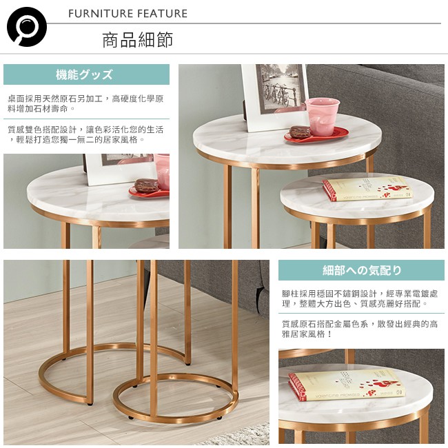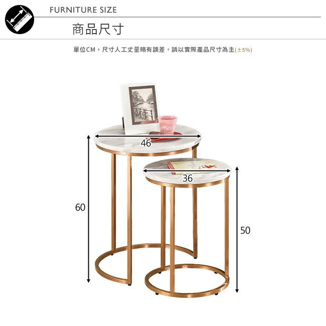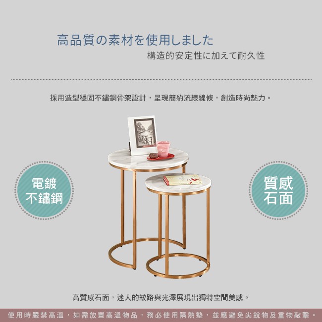 Boden-艾可2.7尺石面小茶几組合(1.5尺茶几+1.2尺茶几)