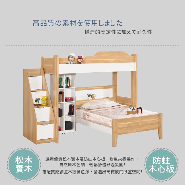 Boden-貝爾3.5尺單人多功能雙層床組(3.5尺高架床+3.5尺床架+樓梯櫃+收納櫃)