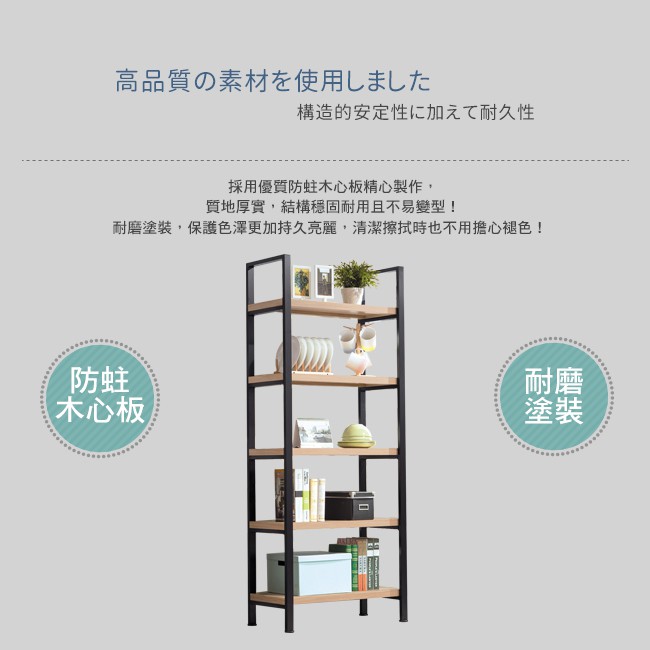 Boden-東尼歐2.7尺工業風開放式書架/展示置物架/五層架