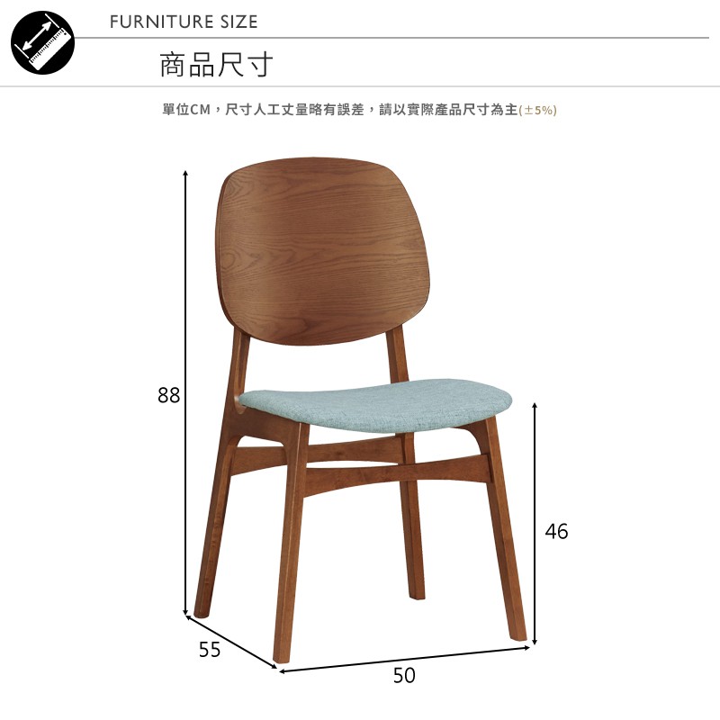 Boden-魯斯胡桃色藍布實木餐椅/單椅