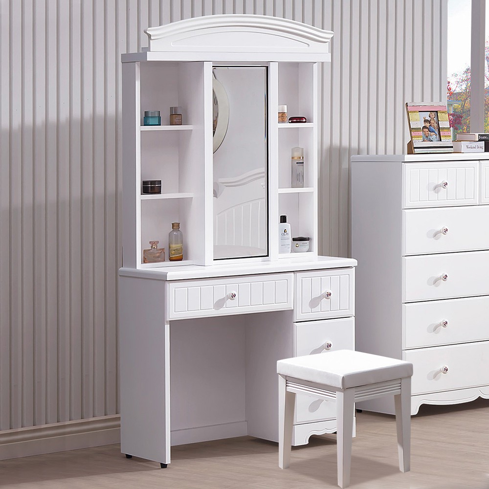 Boden-艾莎法式2.7尺化妝桌/鏡台(贈化妝椅)
