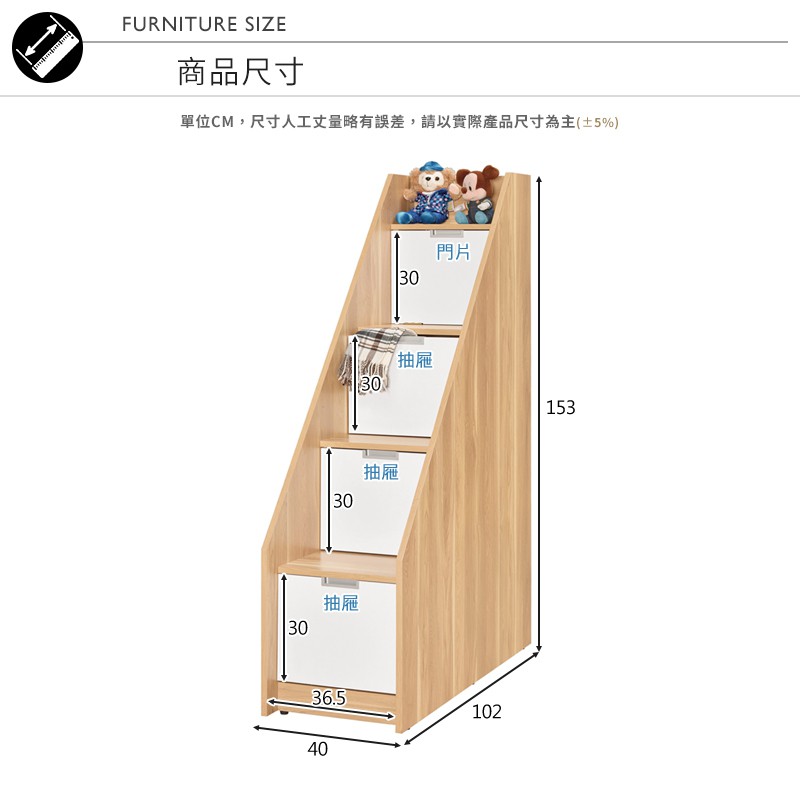 Boden-貝爾1.3尺多功能收納樓梯櫃/三抽一門置物櫃