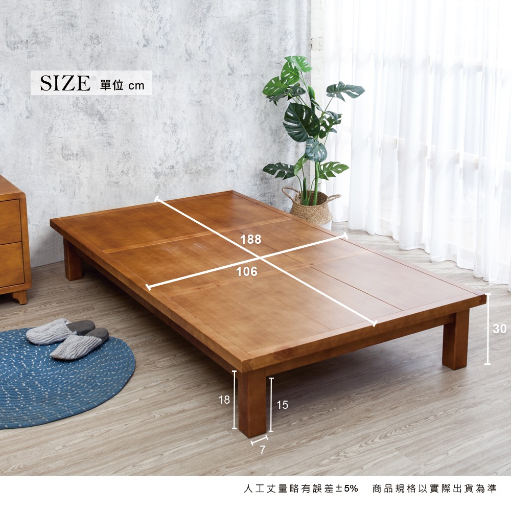 Boden-森林家具 柯特3.5尺單人加大全實木床底(不含床頭片及床墊)