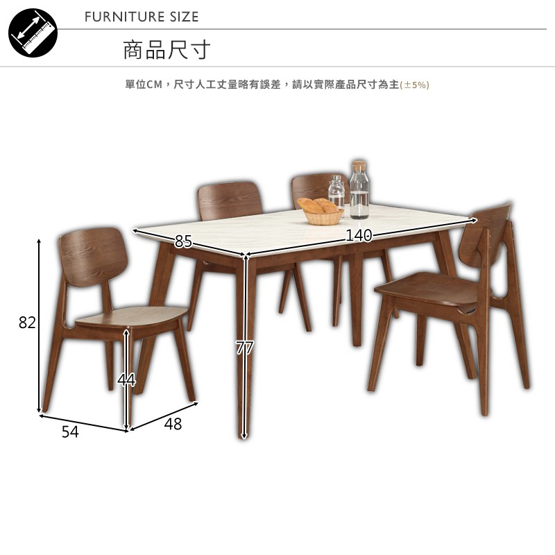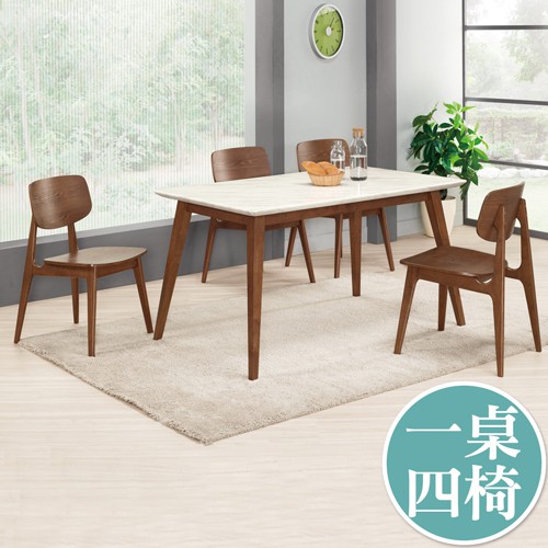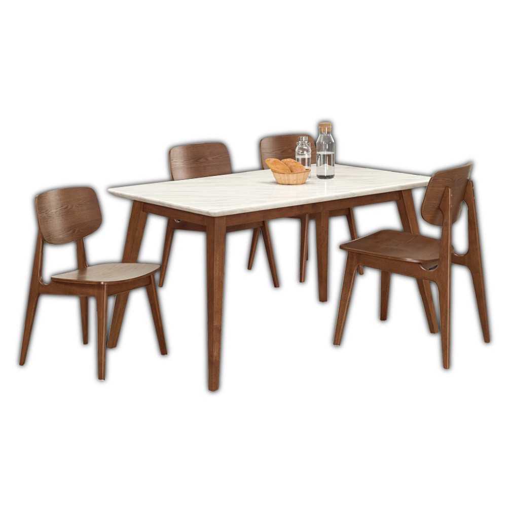 Boden-溫克4.7尺胡桃色石面餐桌椅組合(一桌四椅)(曲木餐椅)