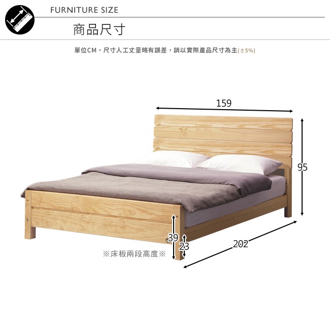 Boden-杰爾5尺雙人松木實木床架
