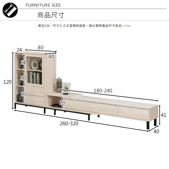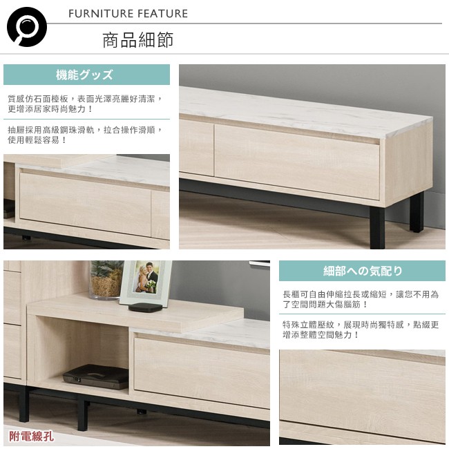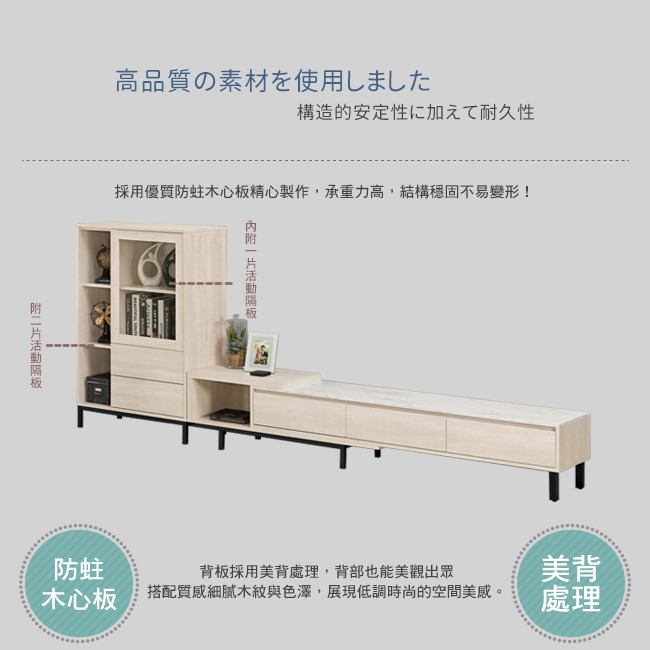 Boden-妮絲11尺L型仿石面伸縮電視櫃組合(展示低櫃+仿石面伸縮長櫃)