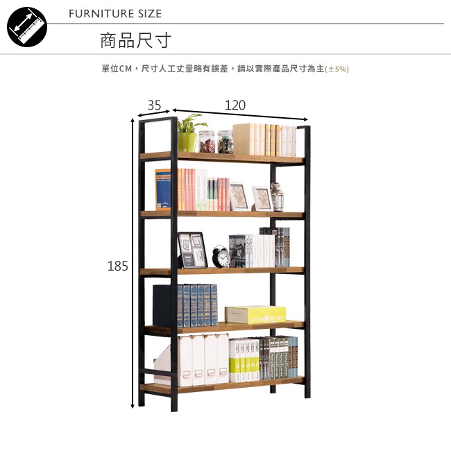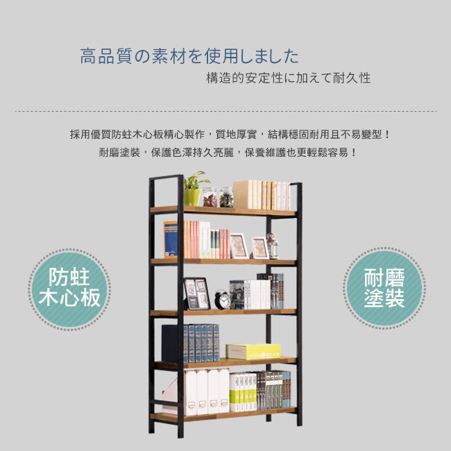 Boden-羅格4尺工業風開放式書架/展示置物架/五層架