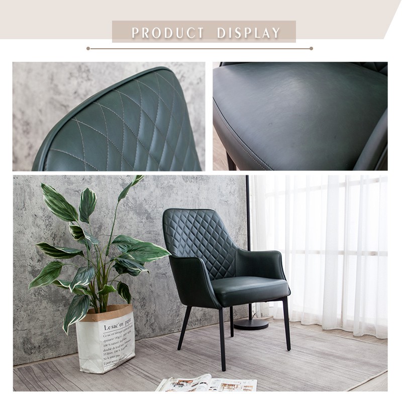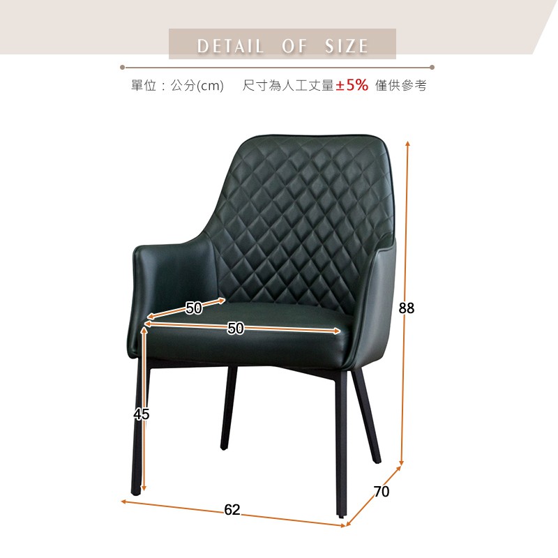 Boden-羅達工業風墨綠色皮革扶手休閒椅/餐椅/單椅