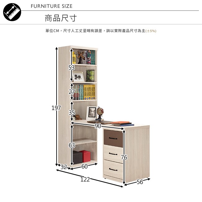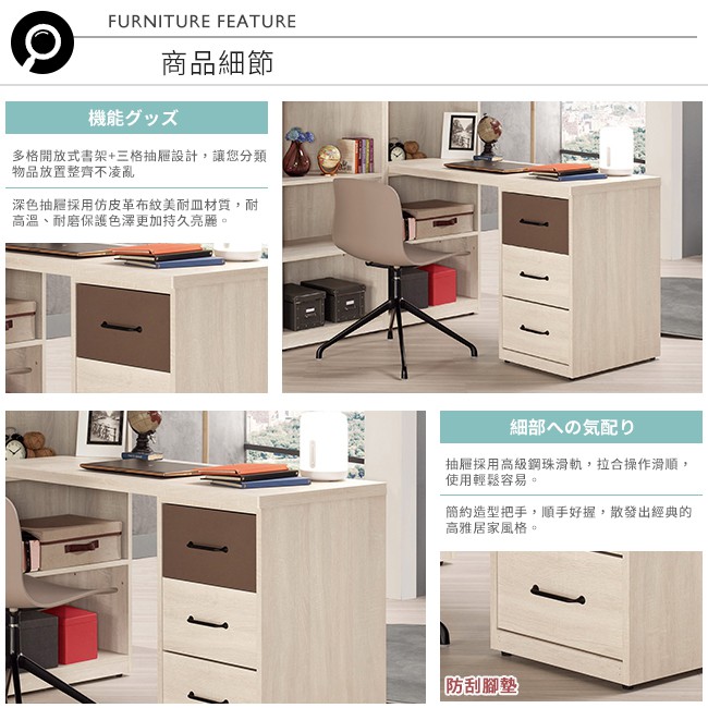 Boden-比恩4.1尺多功能L型書桌/書櫃型工作桌