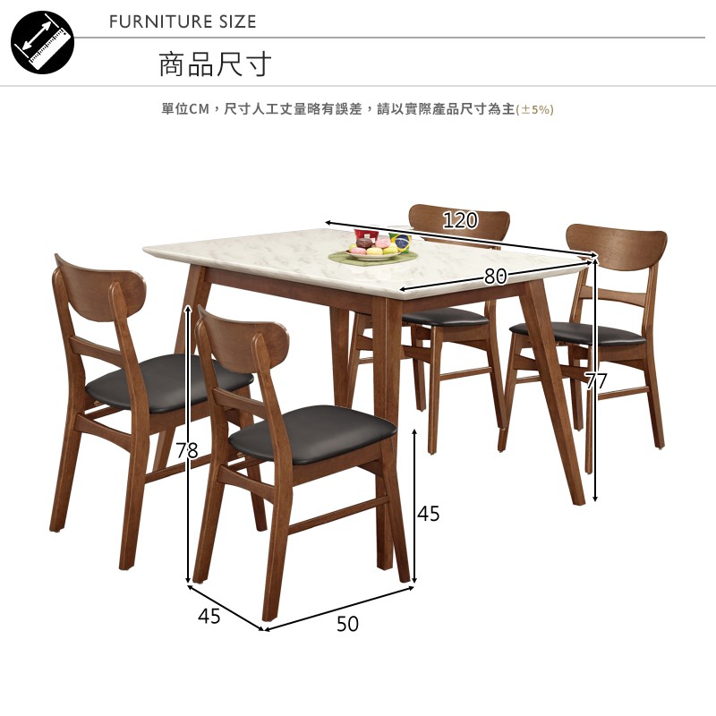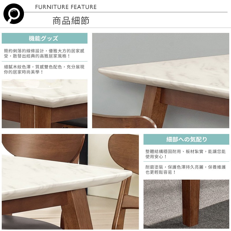 Boden-溫克4尺胡桃色石面餐桌椅組合(一桌四椅)(黑色皮餐椅)