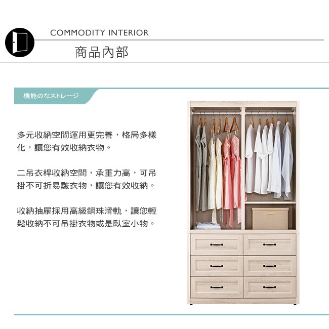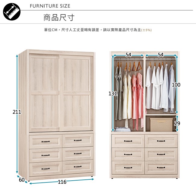 Boden-莉蒂3.9尺六抽推門/拉門衣櫃