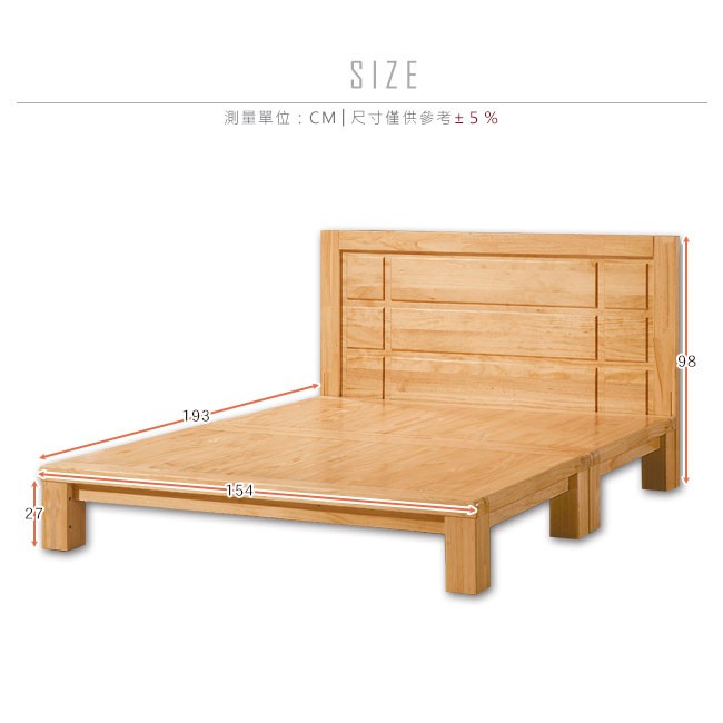 Boden-雅蒂5尺實木雙人床組(床頭片+床底)