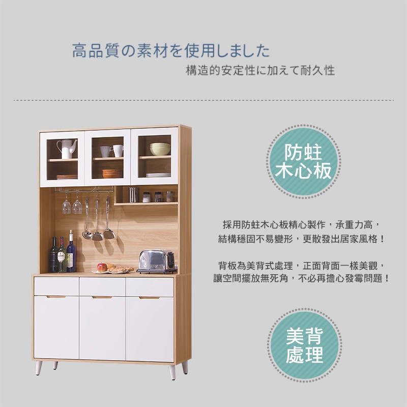 Boden-伊甸4尺北歐風收納高餐櫃/碗盤置物櫃/電器櫃(上座+下座)