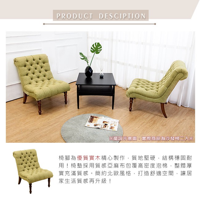 Boden-亞爵美式復古風布沙發單人座椅(綠色)(二入組合)