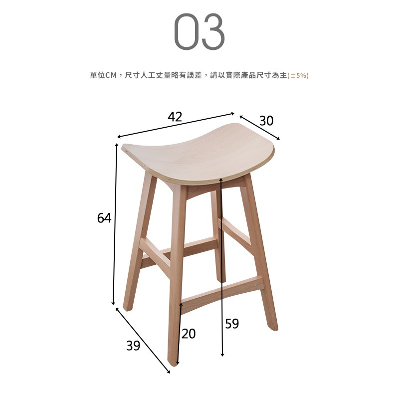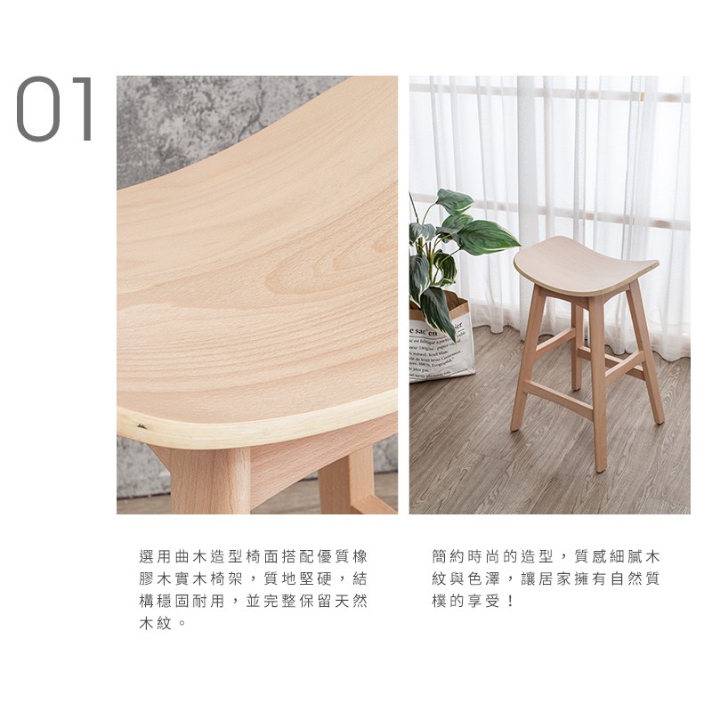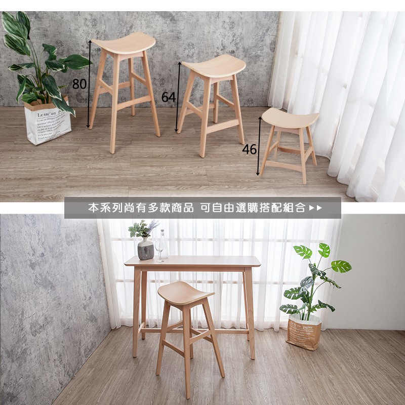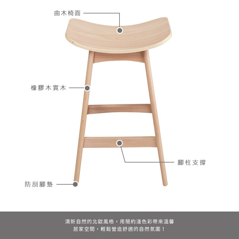 Boden-奧奇曲木造型實木吧台椅/吧檯椅/高腳椅(低)