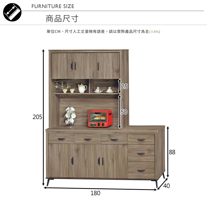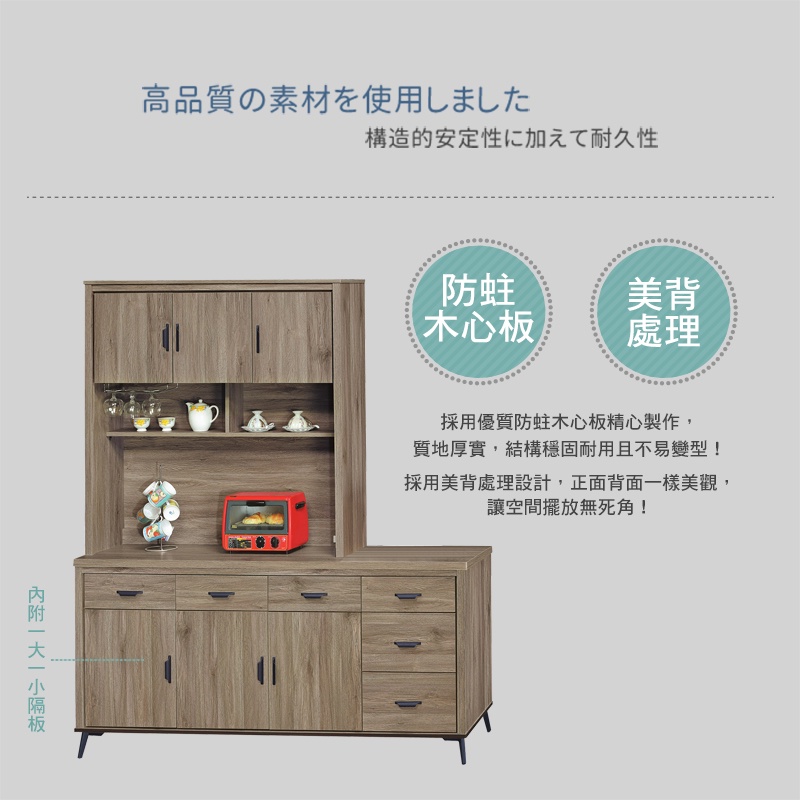 Boden-瓦登6尺工業風灰橡色收納高餐櫃/碗盤櫃/電器櫃(上座+下座)